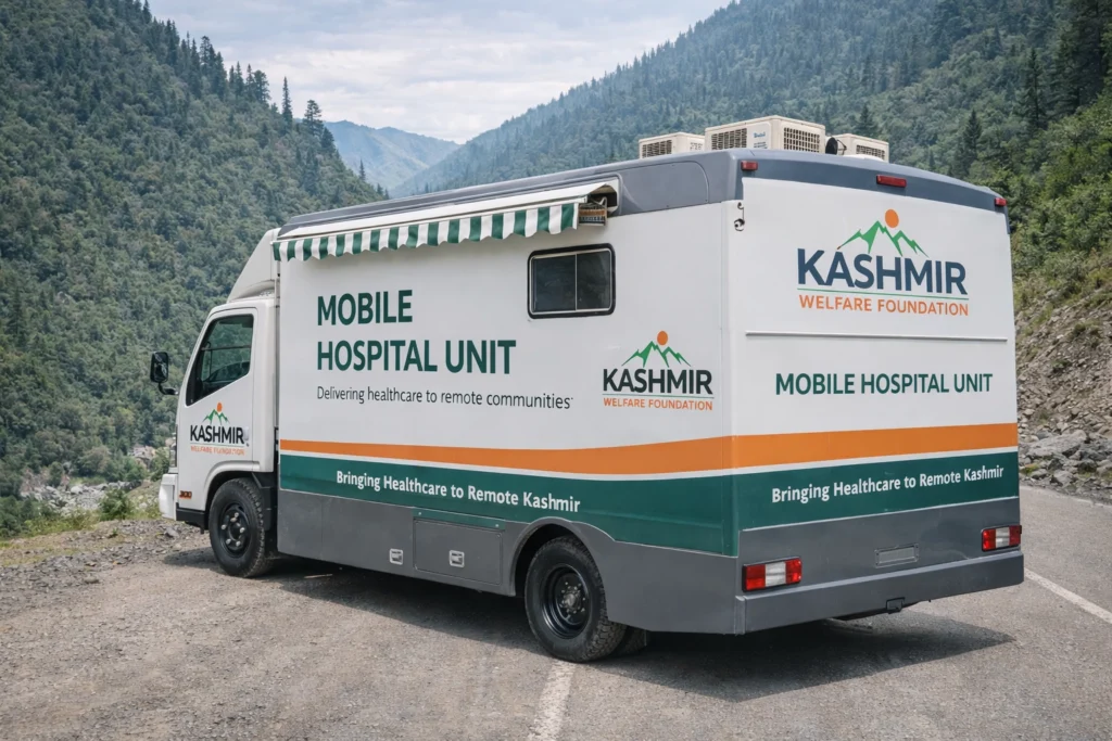 The Mobile Hospital Project in Azad Kashmir is a fully equipped medical unit designed to deliver healthcare directly to remote and underserved communities. It brings doctors, nurses, diagnostic tools, and essential medicines into isolated villages, providing consultations, treatment, and preventative care for families who cannot access hospitals due to distance, poverty, or difficult terrain.