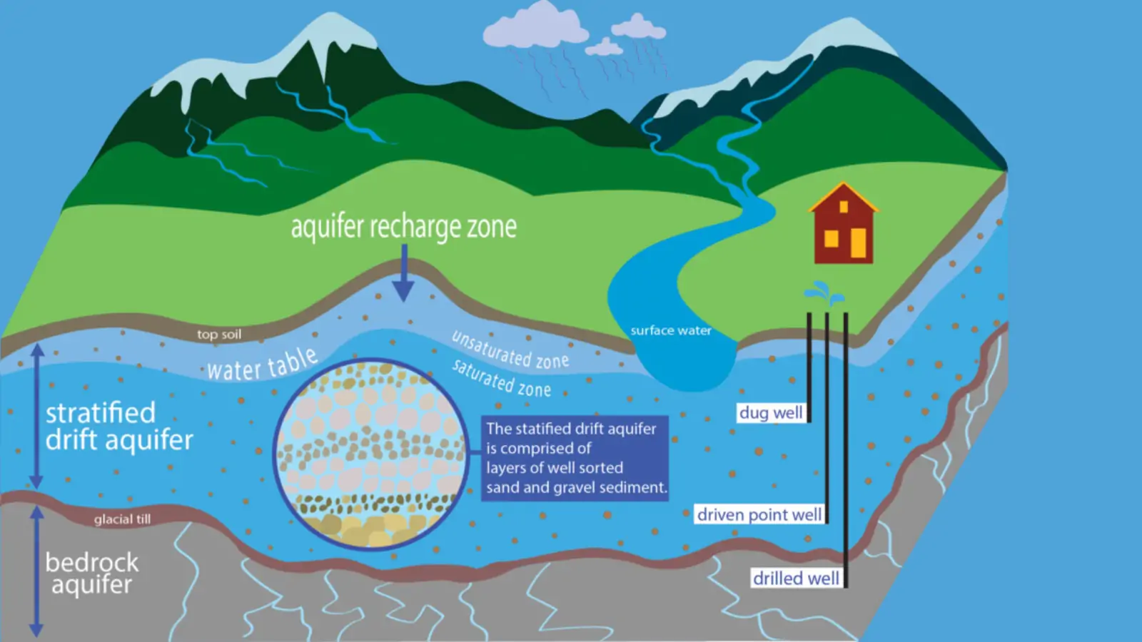 - A 350-foot borehole drilled into secure water layers.